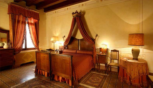 Le finiture delle pareti e del pavimento, rendono l’ambiente unico ed originale, perfettamente in sintonia con la struttura del Castello.