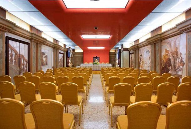 Per una maggiore soddisfazione degli ospiti della struttura ricettiva del Castello di Bevilacqua, si è resa necessaria la realizzazione della sala conferenze, detta “Sala dei Troni”, situata al di sotto del giardino pensile, dove possono essere ospitati eventi di vario genere.