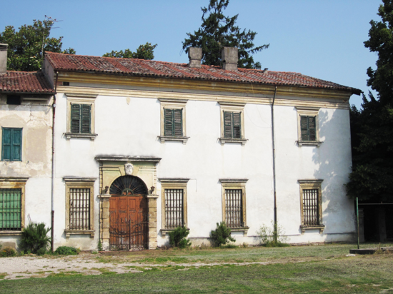 La facciata posta ad ovest prospetta sulla via principale che porta al paese, dalla quale è separata dal giardino esclusivo di proprietà con piante secolari e dal fossato Tioncello che conserva sulla propria riva una scalinata in pietra, anticamente utilizzata come attracco per le imbarcazioni, che conferisce a tutto l’insieme un’immagine particolarmente suggestiva. All’interno l’ampio salone passante d’ingresso è caratterizzato dalla presenza di un’ampia volta a padiglione unghiata con riquadro centrale decorato; anche gli ambienti adiacenti al piano terra destinati a cucina e sala da pranzo presentano delle volte strutturali.